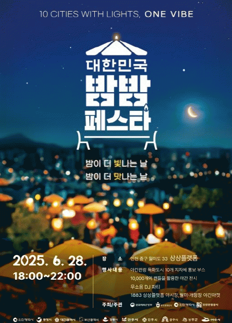 6¿ù 28ÀÏ ¿ÀÈÄ 6½ÃºÎÅÍ 10½Ã±îÁö, »ó»óÇ÷§Æû ¿þÀ̺êȦ¿¡¼´Â Àü±¹ 10°³ ¾ß°£°ü±¤ µµ½ÃÀÇ Áñ±æ°Å¸®¸¦ ÇÑÀÚ¸®¿¡¼ ¸¸³ªº¼ ¼ö Àִ¡®2025 ´ëÇѹα¹ ¹ã¹ã Æä½ºÅ¸¡¯°¡ °³ÃֵȴÙ.