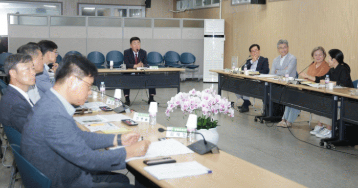À̳¯ ¿ÀÀü ÀÓ½Ãû»ç ´ëȸÀǽǿ¡¼ °³ÃÖµÈ º¸°íȸ¿¡´Â À̹ü¼® ûÁÖ½ÃÀå, ½Ã ÃѰý°ÇÃà°¡ ¹× Á¶°æ Àü¹®°¡, °ü·Ã ºÎ¼Àå µî 15¸íÀÌ Âü¼®Çß´Ù.