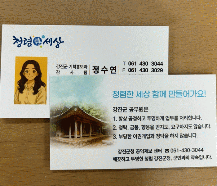 µÞ¸é¿¡´Â ¡ã°Áø±º °øÀÍÁ¦º¸¼¾ÅÍ ÀüȹøÈ£ ¡ãûʱÝÁö¡¤Åõ¸íÇÑ ¾÷¹« ó¸® µî û·Å ½Çõ ´ÙÁü ¹®±¸¸¦ ´ã¾Æ, ¸íÇÔÀ» ¹ÞÀº ¹Î¿øÀÎÀÌ °øÁ÷ÀÚÀÇ Ã»·Å ÀÇÁö¸¦ ü°¨Çϰí, ºÎÁ¶¸®³ª ºñÀ§ ÇàÀ§¿¡ ´ëÇØ º¸´Ù ½±°Ô ½Å°í ⱸ¿¡ Á¢±ÙÇÒ ¼ö ÀÖµµ·Ï ±¸¼ºµÆ´Ù.