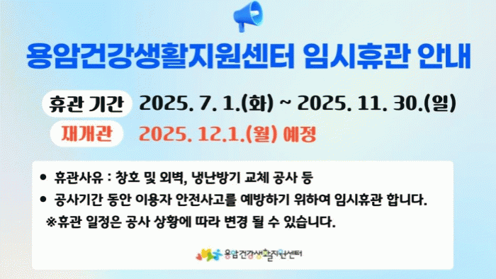 ¿ë¾Ï°Ç°»ýȰÁö¿ø¼¾ÅÍ´Â 2025³â °ø°ø°ÇÃ๰ ±×¸°¸®¸ðµ¨¸µ Áö¿ø»ç¾÷¿¡ ½ÅÃ»ÇØ ÃÖÁ¾ ´ë»óÁö·Î ¼±Á¤µÆ´Ù.