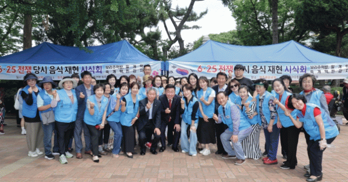 Çѱ¹ÀüÀï ´ç½Ã ¾î·Á¿ü´ø °ú°Å¸¦ ȸ»óÇϰí ÀÚÀ¯¿Í ÆòÈÀÇ ¼ÒÁßÇÔÀ» Àϱú¿ì±â À§ÇÏ¿© ¸¶·ÃµÈ Çà»ç·Î, ¿ÀÀü 11½ÃºÎÅÍ Ã»ÁÖ½ÃÁöȸ ¿©¼ºÈ¸¿øµé°ú À¾?¸é?µ¿ À§¿øµéÀº ÁغñÇÑ º¸¸®ÁÖ¸Ô¹ä, ¹Ð°³¶±, ¾¦°³¶±, Âð °¨ÀÚ µî À½½Ä 300ÀκÐÀ» ½Ã¹Îµé¿¡°Ô ³ª´²Áá´Ù.