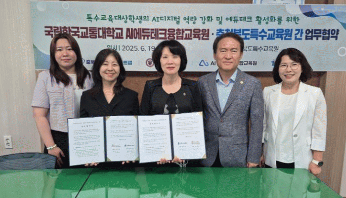 ÃÖ¸í¿Á Ư¼ö±³À°¿øÀåÀº ¡°À¯°ü±â°üµé°ú »óÈ£Á¸ÁßÇÏ°í ½Å·Ú¸¦ ¹ÙÅÁÀ¸·Î, ¹Ì·¡ µðÁöÅÐ ±â¼ú ¹× ¿¡µàÅ×Å© Ȱ¼ºÈ¸¦ À§ÇØ À¯±âÀûÀÎ ÇùÁ¶ ü°è¸¦ È®¸³ÇÔÀ¸·Î½á Ư¼ö±³À°´ë»óÇлýÀÇ AIµðÁöÅÐ ¿ª·®À» °ÈÇÏ°í ¼º°øÀûÀÎ »çȸÅëÇÕ°ú ÀÚ¸³À» À§ÇØ ¾ÕÀå¼°Ú´Ù.¡±¶ó°í ¸»Çß´Ù.
