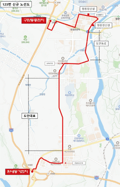 ½Å¼³µÇ´Â ½Ã³»¹ö½º 123¹ø ³ë¼±Àº ¿ø³»µ¿~µµ¾È´ë·Î~µµ¾Èµ¿·Î~±¸¾Ï¿ªÀ» ÀÕ´Â ½Å±Ô ³ë¼±À¸·Î, ±×µ¿¾È ½Ã³»¹ö½º°¡ ¿îÇàµÇÁö ¾Ê´ø µµ¾È´ë·Î, ¿Âõµ¿·Î, ¹®È¿ø·Î¸¦ °æÀ¯ÇÑ´Ù.