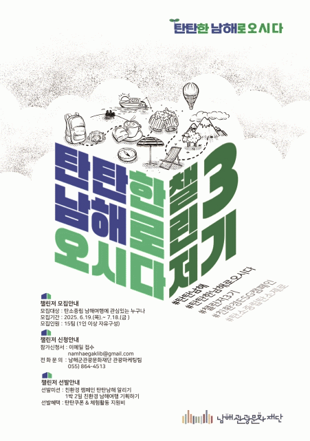³²Çرº°ü±¤¹®ÈÀç´Ü ±è¿ëÅ ´ëÇ¥ÀÌ»ç´Â ¡°¡®ÅºÅº³²ÇØ Ã§¸°Àú 3±â¡¯´Â ³²ÇØÀÇ ¾Æ¸§´Ù¿òÀ» Áö۸ç ÀÇ¹Ì ÀÖ´Â ¿©ÇàÀ» ÇÏ°í ½ÍÀº ¸ðµç ºÐµé¿¡°Ô ¿·Á ÀÖ´Â ±âȸ¡±¶ó¸ç, ¡°»õ·Ó°Ô °³ÆíµÈ ÇýÅõéÀ» ÅëÇØ ´õ¿í Áñ°Ì°í º¸¶÷Âù °æÇèÀ» ÇÏ½Ç ¼ö ÀÖµµ·Ï ÁغñÇß´Ù. ³²ÇØÀÇ ¡®ÅºÅºÇÔ¡¯À» ÇÔ²² ¸¸µé¾î°¥ ¿©·¯ºÐÀÇ ¸¹Àº °ü½É°ú Âü¿©¸¦ ºÎʵ台´Ù¡±°í ¹àÇû´Ù.