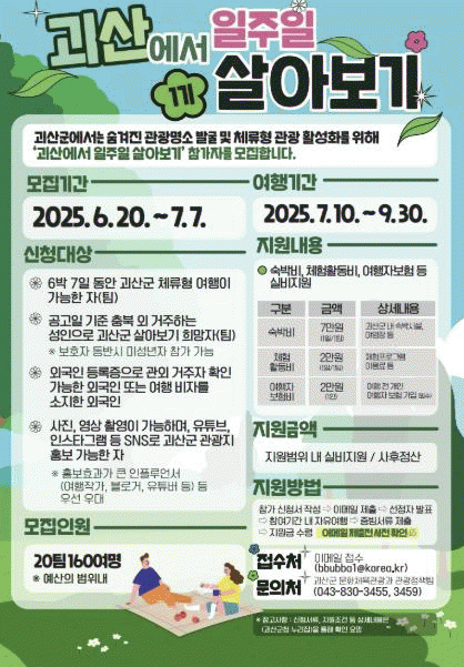 ¼±Á¤µÈ ÆÀÀº 7¿ù 7ÀϺÎÅÍ 9¿ù ¸»±îÁö 6¹Ú 7Àϰ£ÀÇ ±«»ê ÀÚÀ¯¿©ÇàÀ» ¿Ï·áÇϰí SNS Èıâ ÀÛ¼º ±âÁØ¿¡ µû¶ó ÀÚ½ÅÀÇ SNS¿¡ ¿©ÇàÈı⸦ °Ô½ÃÇϸé Áö¿ø±ÝÀ» ¹ÞÀ» ¼ö ÀÖ´Ù.