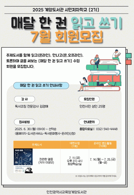 À̹ø ÇÁ·Î±×·¥Àº ÀÌÁ¤¸ð ÀÛ°¡ÀÇ ¡®Âù¶õÇÑ ¸êÁ¾¡¯À» ÇÔ²² ÀÐ°í »ý°¢À» ³ª´« µÚ ±Û¾²±â¸¦ ÅëÇØ µ¶¼ÀÇ ±íÀ̸¦ ´õÇÏ´Â µ¶¼¡¤Ã¢ÀÛ ¿¬°è ÇÁ·Î±×·¥ÀÌ´Ù.