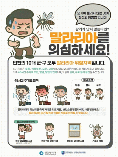 ÀÎõ½Ã´Â 10°³ ¸ðµç ±º¡¤±¸°¡ ¸»¶ó¸®¾Æ À§ÇèÁö¿ª¿¡ ÇØ´çÇÔ¿¡ µû¶ó, ¸ð±â ¼½ÄÀÌ È°¹ßÇÑ Áö¿ªÀ» Áß½ÉÀ¸·Î ¹æÁ¦ Ȱµ¿À» °ÈÇϰí ÀÖ´Ù. µ¿½Ã¿¡ ¸»¶ó¸®¾Æ ȯÀÚ Á¶±â ¹ß°ß ¹× Ä¡·á¸¦ À§ÇÑ Áø·áü°è¸¦ °¡µ¿ ÁßÀ̸ç, ¿¹¹æ¼öÄ¢¿¡ ´ëÇÑ ½Ã¹Î È«º¸µµ Áö¼ÓÀûÀ¸·Î ÃßÁøÇÒ °èȹÀÌ´Ù.