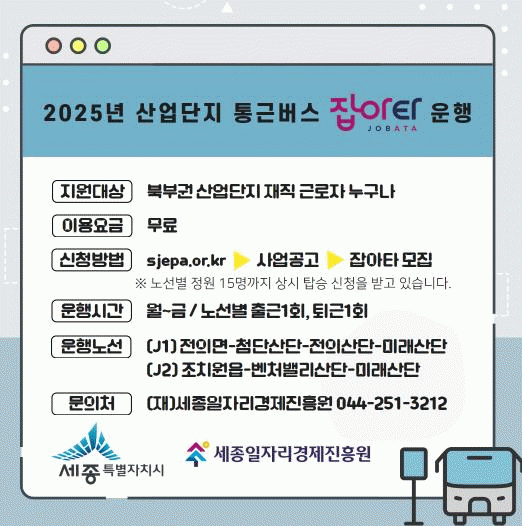 À̹ø¿¡ ¿îÇàÀ» ½ÃÀÛÇÑ ³ë¼±Àº ÃÑ 2°³·Î, ¡ãÀüÀǸ鿡¼ Ãâ¹ßÇØ ÷´Ü»ê´Ü-ÀüÀÇ»ê´Ü-¹Ì·¡»ê´ÜÀ» ¿¬·ÂÇÏ´Â J1 ³ë¼± ¡ãÁ¶Ä¡¿øÀ¾¿¡¼ Ãâ¹ßÇØ º¥Ã³¹ë¸®-¹Ì·¡»ê´ÜÀ» ¿¬°áÇÏ´Â J2 ³ë¼±ÀÌ´Ù. µÎ ³ë¼± ¸ðµÎ ¿ù¿äÀϺÎÅÍ ±Ý¿äÀϱîÁö Ãâ±Ù°ú Åð±Ù °¢ 1ȸ ¿î¿µÇϸç, ³ë¼±º° Á¤¿ø 15¸í±îÁö Àü¿ø ¹«·á·Î ÀÌ¿ëÇÒ ¼ö ÀÖ´Ù.