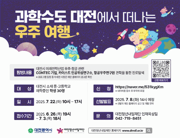 À̹ø ÇÁ·Î±×·¥Àº ¡®°úÇмöµµ ´ëÀü¿¡¼ ¶°³ª´Â ¿ìÁÖ¿©Ç࡯À» ÁÖÁ¦·Î, Ç×°ø¿ìÁÖ»ê¾÷À» À̲ô´Â ´ëÇ¥ ±â¾÷°ú ¿¬±¸±â°üÀ» Á÷Á¢ ¹æ¹®ÇØ Ã»¼Ò³âµé¿¡°Ô »ý»ýÇÑ ÇöÀå üÇè°ú Áø·Î ¼³°èÀÇ ±âȸ¸¦ Á¦°øÇÑ´Ù.