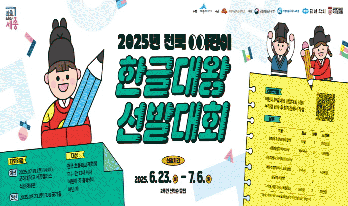 ´ëȸ´Â ³»´Þ 19ÀÏ ¿¹¼±°ú 8¿ù 23ÀÏ º»¼±À¸·Î ³ª´² ÁøÇàµÇ¸ç, ÃʵîÇб³ ±³°ú °úÁ¤°ú À¯»çÇÑ ³À̵µÀÇ ¹®Ç×À¸·Î ÇÑ±Û ¸ÂÃã¹ý µî ¾î¹® ±ÔÁ¤°ú ¼ø¿ì¸®¸» ¾îÈÖ ´É·ÂÀ» Á¾ÇÕ Æò°¡ÇÑ´Ù.