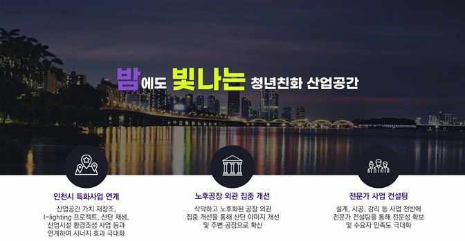 À̹ø »ç¾÷Àº »ê¾÷´ÜÁö ³» ¿µ¼¼¡¤Áß¼Ò±â¾÷ °øÀåÀÇ ³»?¿ÜºÎ ȯ°æÀ» °³¼±Çϰí, û³âÃþÀÌ ¼±È£ÇÒ ¼ö ÀÖ´Â ±Ù·Îȯ°æÀ» Á¶¼ºÇÔÀ¸·Î½á û³â ±Ù·ÎÀÚÀÇ »ê¾÷´ÜÁö À¯ÀÔÀ» À¯µµÇϱâ À§ÇØ ÃßÁøµÈ´Ù.