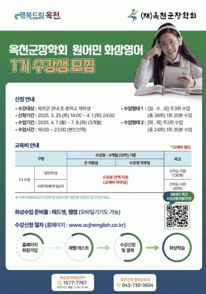 ¸ðÁý ´ë»óÀº °ü³» ÃʵîÇб³¿Í ÁßÇб³¿¡ ÀçÇÐ ÁßÀÎ ÇлýµéÀ» ´ë»óÀ¸·Î ÇÏ¸ç ½Åû ±â°£Àº 25ÀÏ ¿ÀÈÄ 2½ÃºÎÅÍ 7¿ù 2ÀϱîÁöÀÌ´Ù. ¼ö¾÷Àº ¿À´Â 7¿ù 9ÀϺÎÅÍ 10¿ù 1ÀϱîÁö 3°³¿ù µ¿¾È ÁøÇàµÈ´Ù.