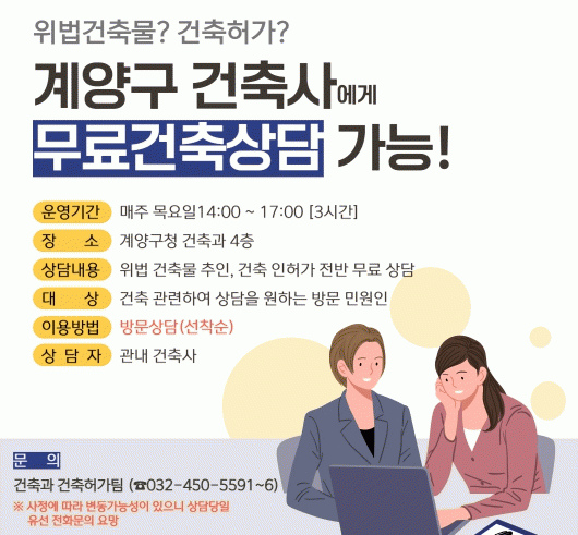 ¡®¹«·á °ÇÃà ¹Î¿ø »ó´ã½Ç¡¯Àº ±¸¹Î¿¡°Ô ¾çÁúÀÇ °ÇÃà ÇàÁ¤ ¼ºñ½º¸¦ Á¦°øÇϰí, °ÇÃà Àü¹®°¡¿¡°Ô´Â Áֹΰú ¼ÒÅëÇϸç Áö¿ª¿¡ ºÀ»çÇÒ ¼ö ÀÖ´Â »çȸÂü¿© ±âȸ¸¦ Á¦°øÇϱâ À§ÇØ ¿î¿µµÇ°í ÀÖ´Ù.