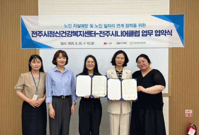 ÀüÁÖ½ÃÁ¤½Å°Ç°º¹Áö¼¾ÅÍ(¼¾ÅÍÀå ±èº¸¿µ)´Â 25ÀÏ ÀüÁֽôϾîŬ·´(°üÀå ±èÈ¿Ãá)°ú ³ëÀÎ »ý¸í Á¸Áß ÀÎ½Ä Á¦°í¸¦ À§ÇÑ ¾÷¹«Çù¾àÀ» ü°áÇß´Ù.