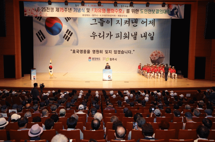 ÂüÀüÀ¯°øÀÚµéÀÇ Èñ»ý°ú Çå½ÅÀ» ±â¸®°í ÀüÀïÀÇ ¿ª»çÀû ±³ÈÆÀ» µÇ»õ±â±â À§ÇÑ ÀÌ ³¯ ±â³äÇà»ç¿¡´Â ±è¿µÈ¯ ÃæÃ»ºÏµµÁö»ç¸¦ ºñ·ÔÇÏ¿© À̹ü¼® ûÁÖ½ÃÀå µî ±â°ü´ÜüÀå°ú °¢±Þ º¸ÈÆ´Üü ȸ¿ø, 6.25ÂüÀüÀ¯°øÀÚ, Çлý µî 1,400¿©¸íÀÌ Âü¼®ÇÑ °¡¿îµ¥ ÁøÇàµÆ´Ù.