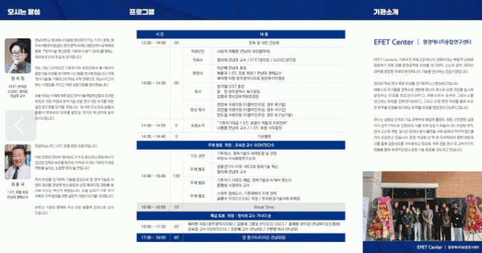 À̾îÁö´Â ÆÐ³Î Åä·ÐÀº Á¤¼®Èñ ±³¼ö(Àü³²´ë)ÀÇ »çȸ·Î ÃÖÁöÇö ÀÇ¿ø(±¤ÁÖ±¤¿ª½ÃÀÇȸ), À±Á¦Á¤ ¼¾ÅÍÀå(Àü³²¹ÙÀÌ¿ÀÁøÈï¿ø), ±è¿øÅ ±×·ìÀå(POSCO E&C), Á¶¼÷°æ ±³¼ö(KENTECH), Á¶ÀºÇý ±³¼ö(Àü³²´ë), ±¸º»¿µ ¹Ú»ç(Àü³²´ë)°¡ Âü¿©ÇØ Ã»»ö±â¼úÀÇ Áö¿ª±â¹Ý È®»ê, »ê¾÷È °¡´É¼º, Á¦µµÀû Á¤ºñ µî¿¡ ´ëÇØ Ȱ¹ßÇÑ ÀǰßÀ» ³ª´³´Ù.