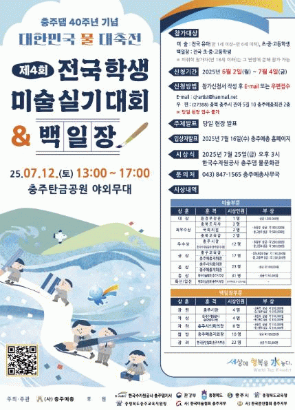 ÀÌ ´ëȸ´Â ¹°ÀÇ °íÀåÀÎ ÃæÁÖ¸¦ Àü±¹¿¡ ¾Ë¸®°í Çлýµé¿¡°Ô ´õ ³ÐÀº ¹ÌÀû °¨¼º°ú ´Ù¾çÇÑ Àç´É ¹× °³¼ºÀ» ½ÅÀå½Ã۰íÀÚ °³Ãֵǰí ÀÖ´Ù.