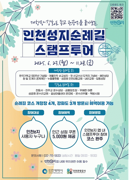 Âü¿© ¹æ¹ýÀº ÀÎõ ½º¸¶Æ®°ü±¤ ¾ÖÇø®ÄÉÀÌ¼Ç ¡®ÀÎõeÁö¡¯¸¦ ¼³Ä¡ÇÑ ÈÄ È¸¿ø°¡ÀÔÀ» Çϰí, ¡®2025 ÀÎõ ¼ºÁö¼ø·Ê±æ ½ºÅÆÇÁÅõ¾î(°³Ç×Àå/°Èµµ)¡¯¸¦ ¼±ÅÃÇÑ µÚ ÁöÁ¤µÈ °ü±¤Áö¸¦ ¹æ¹®Çϸé À§Ä¡ Á¤º¸(GPS) ±â¹ÝÀ¸·Î ¸ð¹ÙÀÏ ½ºÅÆÇÁ°¡ ÀÚµ¿ ÀνĵǴ ¹æ½ÄÀÌ´Ù.
