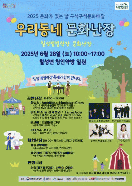 À̹ø Çà»ç´Â Ä¥¼º¸é ÁֹεéÀÌ Á÷Á¢ ±âȹÇϰí Âü¿©ÇÏ´Â Áö¿ª ´ëÇ¥ °Å¸®ÃàÁ¦ÀÎ ¡®Ä¥¼ºº°º°¶ôÀ塯°ú Çù¾÷ÇØ ¡®Ä¥¼ºº°º°¶ôÀå ¹®È³À塯À̶ó´Â À̸§À¸·Î ÁøÇàµÈ´Ù.