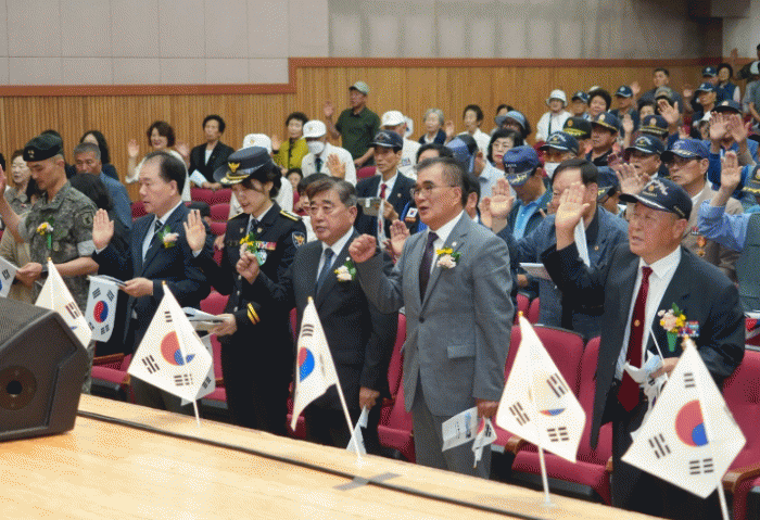 À̳¯ Çà»ç¿¡´Â º¸ÈÆ´ÜüÀå, ÂüÀüÀ¯°øÀÚ ¹× À¯°¡Á·, ±â°ü¡¤´ÜüÀå, ÁֹΠµî 400¿©¸íÀÌ Âü¼®ÇÑ °¡¿îµ¥, È£±¹º¸ÈÆÀÇ ´ÞÀ» ¸Â¾Æ ¼ø±¹¼±¿°ú ÂüÀü¿ë»çµéÀÇ ¼þ°íÇÑ Èñ»ýÀ» ±â¸®°í ÀÚÀ¯ ¼öÈ£ÀÇ Àǹ̸¦ µÇ»õ°å´Ù.