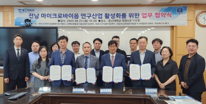 Áö³ 6¿ù 23ÀÏ Àü³² ³ªÁÖ¿¡ À§Ä¡ÇÑ µ¿½Å´ëÇб³¿¡¼ Âü¿©±â°üÀÌ Ã¼°áÇÑ Çù¾à ÁÖ¿ä ³»¿ë¿¡´Â ¡â°ü·Ã »ý¹°ÀÚ¿øÀÇ Áö¼Ó°¡´ÉÇÑ ÀÌ¿ëÀ» À§ÇÑ °øµ¿¿¬±¸ ¹ß±¼, ¡â¹Ì»ý¹° À¯ÀüÁ¤º¸ ¿¬±¸»ê¾÷ Àü¹®¿ä¿ø ¾ç¼º°úÁ¤ °³¹ß ¹× Çù¾÷ ¿î¿µÃ¼°è ¸¶·Ã, ¡â¿¬±¸ »ê¾÷±º À°¼ºÀ» À§ÇÑ »óÈ£ Çù·Â, ¡âÀü³² ¹ÙÀÌ¿À»ê¾÷ÀÇ Àû±ØÀû »óÈ£ ¹ßÀüÀ» À§ÇÑ ±³·ù ¹× Çù·Â µîÀÌ Æ÷ÇԵƴÙ.