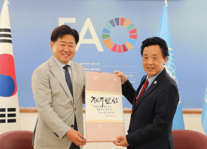 ¾Æ¿ï·¯ ¡°À¯¿£ ½Ä·®³ó¾÷±â±¸°¡ ÃßÁøÇÏ´Â ½Ä·®¾Èº¸ Á¤Ã¥°ú ±âÈÄÀ§±â ´ëÀÀ¹æ¾È¿¡ Á¦ÁÖµµ°¡ Àû±Ø Çù·ÂÇϰڴ١±¸ç ¡°Áö¹æÁ¤ºÎ Â÷¿ø¿¡¼ ±Û·Î¹ú ½Ä·®¹®Á¦ ÇØ°á¿¡ ±â¿©ÇÒ ¼ö ÀÖµµ·Ï ÃÖ¼±À» ´ÙÇϰڴ١±°í ¸»Çß´Ù.