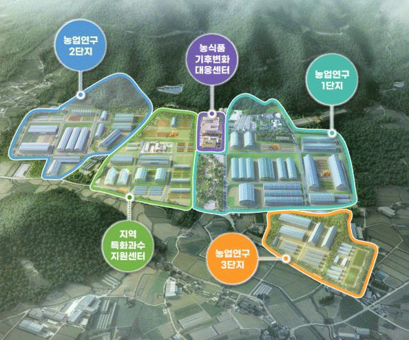 ´ÜÁö ³»¿¡´Â °í±¸¸¶ ¿¬±¸¼¾ÅÍ, °úÇпµ³ó½ÇÁõ´ÜÁö, û³â³ó¾÷ÀÎ ÀÓ´ë³óÀå µîÀÌ Á¶¼ºµÆÀ¸¸ç, Àü³²µµ °ú¼ö¿¬±¸¼Ò ÇØ³² ÅëÇÕÀÌÀüÀ¸·Î ³ó¾÷°úÇÐ, ÇöÀå½ÇÁõ, ±â¼úº¸±Þ, Àη¾缺 µî ³ó¾÷ÀÇ ¹Ì·¡°¡ Áý¾àµÈ ½º¸¶Æ® º§Æ®°¡ Á¶¼ºµÉ Àü¸ÁÀÌ´Ù.