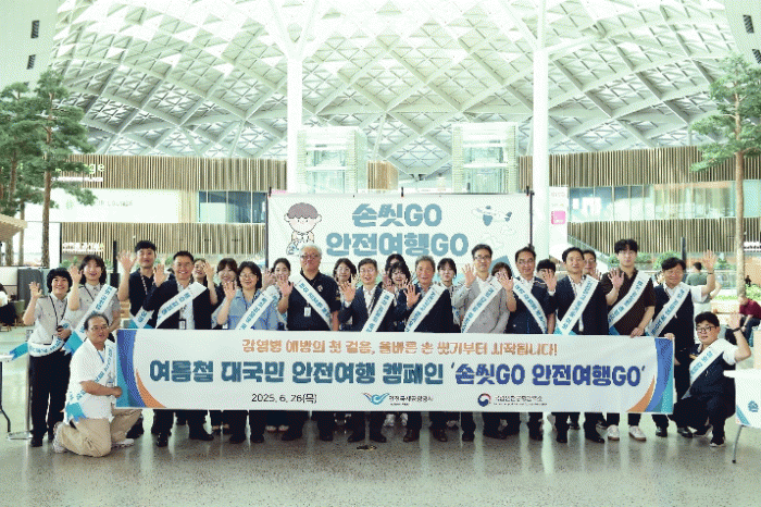 À̳¯ ÀÎõ±¹Á¦°øÇ×°ø»ç ÀÌÇÐÀç »çÀå, ±¹¸³ÀÎõ°øÇ×°Ë¿ª¼Ò À±Çö´ö ¼ÒÀå ¹× ¾ç ±â°ü Âü¼®ÀÚµéÀº Á¦2¿©°´Å͹̳ΠÃâ±¹Àå¿¡ ¸¶·ÃµÈ À̺¥Æ® ºÎ½º¿¡¼ ¿©°´µé¿¡°Ô ¾ÈÀü¿©Çà È«º¸¹®±¸°¡ ´ã±ä ¿©Çà¿ëǰ°ú ¿Ã¹Ù¸¥ ¼Õ ¾Ä±â ¿ä·É µîÀÌ ´ã±ä ¾È³» ÀڷḦ ³ª´²ÁÖ¸ç ¾ÈÀüÇÑ ÇØ¿Ü¿©ÇàÀ» À§ÇÑ Áؼö»çÇ×À» ¾È³»Çß´Ù.