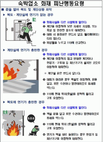 °è´Ü½Ç¿¡ ¿¬±â°¡ °¡µæÇÑ °æ¿ì¿¡´Â °è´Ü ÀÌ¿ëÀ» ÇÇÇϰí, ¹Ý´ëÆí¿¡ À§Ä¡ÇÑ Çdz±â±¸(¿Ï°±â µî)°¡ ¼³Ä¡µÈ ¹æÇâÀ¸·Î À̵¿ÇØ ´ëÇÇÇØ¾ß ÇÑ´Ù.
