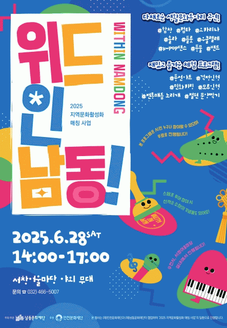 ¡®À§µåÀÎ ³²µ¿!¡¯°ú ³²µ¿¹®ÈÀç´Ü¿¡¼ ÁøÇàÇÏ´Â ¹®ÈÇà»ç °ü·Ã ÀÚ¼¼ÇÑ ÀÏÁ¤ ¹× ³»¿ëÀº ³²µ¿¹®ÈÀç´Ü ´©¸®Áý(ȨÆäÀÌÁö) ¹× SNS¿¡¼ È®ÀÎ ÇÒ ¼ö ÀÖ´Ù.