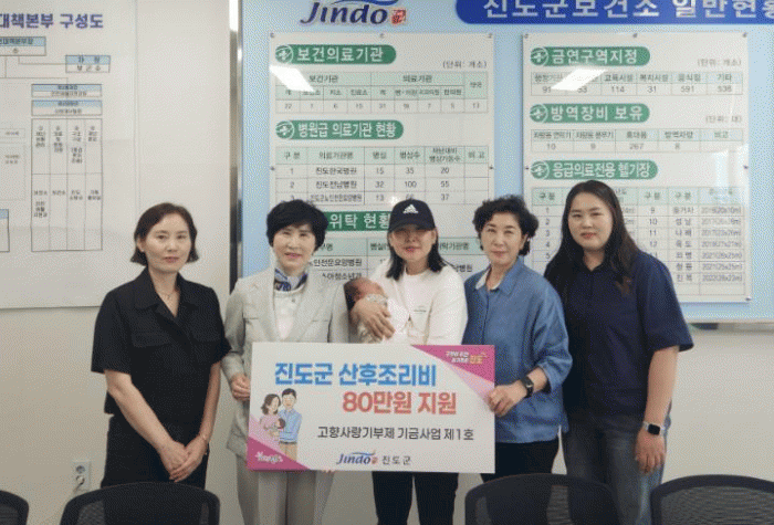 Áö¿ø»ç¾÷Àº °íÇâ»ç¶û±âºÎÁ¦ ±â±Ý»ç¾÷ Á¦1È£·Î ÃßÁøµÇ¸ç, Áøµµ±º¿¡ Ãâ»ý½Å°í¸¦ ÇÑ °ü³» Ãâ»ê °¡Á¤¿¡ Áö¿ª »óǰ±Ç 80¸¸ ¿øÀ» Áö¿øÇÑ´Ù.