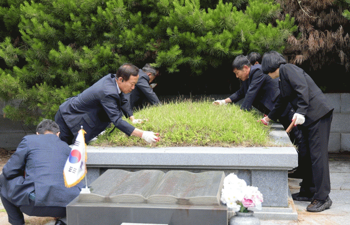 ±è°æÁ¦ ÀÇÀåÀ» Æ÷ÇÔÇÑ 7¸íÀÇ ¼Ãµ±ºÀÇȸ ÀÇ¿øµéÀº ¹¦¼Ò ÁÖº¯À» Á¤ºñÇϰí ÇåÈÇÏ¸ç Æò»ýÀ» ´ëÇѹα¹ µ¶¸³À» À§ÇØ ¹ÙÄ£ ±è°©¼ö Áö»çÀÇ Çå½ÅÀ» ±â·È´Ù.