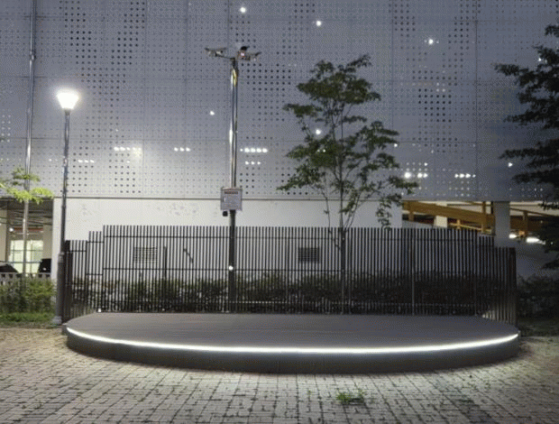 ¹«´ë ½Ã¼³Àº Àüü¸éÀû °¡·Î¡¤¼¼·Î 8m¡¿5.5m ±Ô¸ðÀÇ ¹«´ë¿Í ¹éº¸µå·Î ±¸¼ºµÇ¾î ÀÖÀ¸¸ç, ¾ß°£ º¸ÇàÇÏ´Â ÁÖ¹ÎÀÇ ½ÃÀμºÀ» ³ôÀÌ°í ¾ÈÀü È®º¸¸¦ À§ÇØ ¹«´ëµÑ·¹¿¡ Á¶¸í ½Ã¼³À» ¼³Ä¡Çß´Ù.