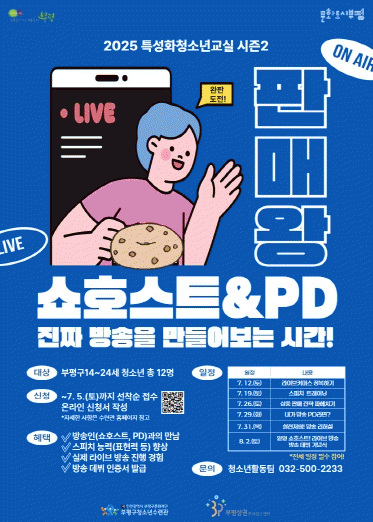 ºÎÆòµðÁöÅлó±Ç¼¾ÅÍ¿Í ¿¬°èÇÑ À̹ø ÇÁ·Î±×·¥Àº ÃÖ±Ù °¢±¤¹Þ´Â ½Ç½Ã°£ ¼ÒÅë ÆÇ¸Å(¶óÀ̺êÄ¿¸Ó½º)¸¦ ÁÖÁ¦·Î, û¼Ò³âµéÀÌ »óǰ ÆÇ¸ÅÀÇ »õ·Î¿î ¹æ½Ä¿¡ ´ëÇØ ÀÌÇØÇϰí Á÷Á¢ ÆÇ¸Å ¹æ¼ÛÀ» ±âȹ¡¤¿î¿µÇÏ´Â °úÁ¤(ÃÑ 6ȸ)À¸·Î ±¸¼ºµÆ´Ù.