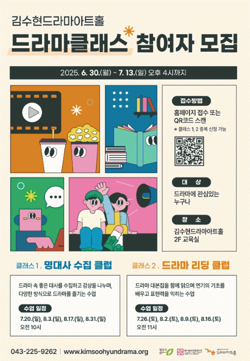 ûÁÖ½Ã¿Í Ã»Áֽù®È»ê¾÷ÁøÈïÀç´ÜÀÌ ¿î¿µÇÏ´Â ±¹³» À¯ÀÏÀÇ µå¶ó¸¶¹®Çаü ±è¼öÇöµå¶ó¸¶¾ÆÆ®È¦(ÀÌÇÏ µå¶ó¸¶¾ÆÆ®È¦)ÀÌ 7¿ù 13ÀÏ(ÀÏ) ¿ÀÈÄ 4½Ã±îÁö, µå¶ó¸¶Å¬·¡½º Âü¿©ÀÚ¸¦ ¸ðÁýÇÑ´Ù.