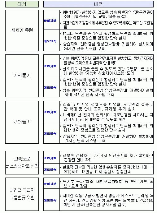 °æÂûû¿¡¼´Â ?»õÄ¡±â À¯ÅÏ ?12Àν ÀÌÇÏ ½ÂÇÕÂ÷ÀÇ °í¼Óµµ·Î ¹ö½ºÀü¿ëÂ÷·Î À§¹Ý?²¿¸®¹°±â ?³¢¾îµé±â?ºñ±ä±Þ ±¸±ÞÂ÷ÀÇ ±³Åë¹ý±Ô À§¹Ý µî 5´ë ¹ÝÄ¢ ¿îÀüÀ» Áß½ÉÀ¸·Î ±³ÅëÁú¼ È®¸³À» ÃßÁøÇÑ´Ù.