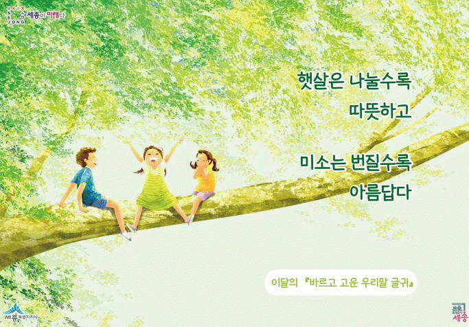 ÇÑÆí, ¼¼Á¾½Ã´Â Çѱ۹®Èµµ½Ã »ç¾÷ ÃßÁø ¿ø³â°ú Àü±¹ ÃÖÃÊ¡¤À¯ÀÏÀÇ Çѱ۹®Èµµ½Ã°ú ½Å¼³À» ±â³äÇØ ¿ÃÇØ 3¿ùºÎÅÍ °Ý¿ù·Î ¡®¹Ù¸£°í °í¿î ¿ì¸®¸»¡¯À» ¼±Á¤ÇØ ½Ã¹Îµé¿¡°Ô È«º¸Çϰí ÀÖ´Ù.