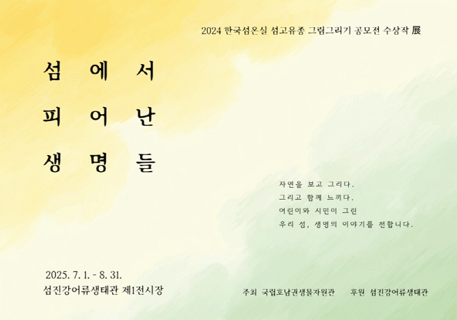 À̹ø Àü½Ã´Â 2024³â ±¹¸³È£³²±Ç»ý¹°ÀÚ¿ø°üÀÌ ÁÖÃÖÇÑ ¡®Çѱ¹¼¶¿Â½Ç ¼¶°íÀ¯Á¾ ±×¸² ±×¸®±â °ø¸ðÀü¡¯ÀÇ ¼ö»óÀÛ 22Á¡À» Áß½ÉÀ¸·Î ±¸¼ºµÆÀ¸¸ç, ¼¶¿¡¼ ¼½ÄÇÏ´Â »ý¹°À» ÁÖÁ¦·Î ÇÑ ´Ùä·Î¿î âÀÛ ÀÛǰµéÀ» ÅëÇØ »ý¹°´Ù¾ç¼ºÀÇ °¡Ä¡¸¦ ÀüÇϰíÀÚ ±âȹµÆ´Ù.