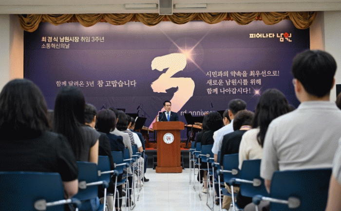 ÃÖ°æ½Ä ½ÃÀåÀº ¡°Áö³ 3³â°£ ¸ðµÎ°¡ ÇÔ²² ÇØÁֽŠ´öºÐ¿¡ ¹Î¼± 8±â ³²¿ø½ÃÁ¤ º¯È¸¦ ´«ºÎ½Å ¼º°ú·Î ÀÌ·ê ¼ö ÀÖ¾ú´Ù¡±¸é¼ ¡°Áö³ 3³â µ¿¾È ÇѸ¶À½ ÇѶæÀ¸·Î ³²¿ø¹ßÀüÀÇ ¿¸Á°ú ½Å·Ú¸¦ º¸¿© ÁØ ½Ã¹Îµé°ú ±× ¿©Á¤¿¡ ÇÔ²² ÇØ ÁØ 1,500¿©¸íÀÇ °øÁ÷Àڵ鲲 Ưº°È÷ °¨»çµå¸°´Ù¡±°í ¼Ò°¨À» ¹àÇû´Ù.