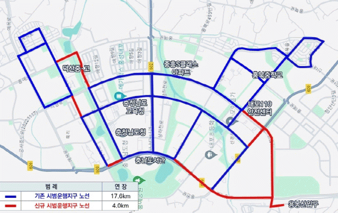 µµÃ»°ú µµ±³À°Ã» µî ÁÖ¿ä ±¤¿ªÇàÁ¤±â°üÀÌ ¹ÐÁýÇØ ÀÖ´Â Ãæ³² ÇàÁ¤ÀÇ Áß½ÉÁöÀÎ ³»Æ÷½Åµµ½Ã´Â È«¼º¡¤¿¹»ê±º¿¡ °ÉÃÄ Á¶¼ºÇÑ °èȹµµ½Ã·Î ¿Õº¹ 4¡6Â÷·Î ÀÌ»ó µµ·Î ±â¹ÝÀÌ Àß °®ÃçÁ® ÀÖ¾î ÀÚÀ²ÁÖÇà ½ÇÁõ¿¡ ÀûÇÕÇÑ È¯°æÀ» °®ÃèÀ¸¸ç, ÀÚÀ²ÁÖÇà ¼ºñ½º ½ÇÁõ¿¡ µû¸¥ ´ë¿Ü È«º¸ È¿°úµµ Ŭ °ÍÀ¸·Î ¿¹»óµÈ´Ù.