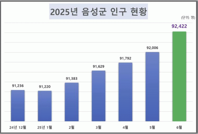 ÇàÁ¤¾ÈÀüºÎ Áֹεî·ÏÀα¸ Åë°è¿¡ µû¸£¸é, 2025³â 6¿ù 30ÀÏ ±âÁØ À½¼º±º ³»±¹ÀÎ Àα¸¼ö´Â 9¸¸2422¸íÀ» ±â·ÏÇØ 2021³â 9¸¸2116¸í ÀÌÈÄ ÃÖ´ëÄ¡¸¦ °æ½ÅÇß´Ù.
