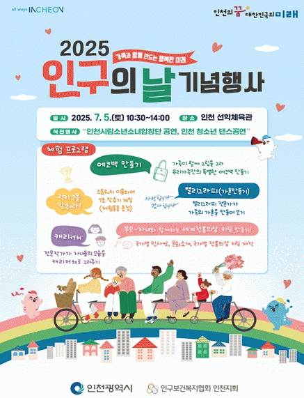 Àα¸º¸°Çº¹ÁöÇùȸ ÀÎõÁöȸ, °è¾ç±¸°¡Á·¼¾ÅÍ, ÀÎõ¿Ü±¹ÀÎÁ¾ÇÕÁö¿ø¼¾ÅÍ, ÀÎõÀÎÀçÆò»ý±³À°ÁøÈï¿ø µî °ü·Ã ±â°üµéµµ ÇÔ²² Âü¿©ÇØ Àα¸Á¤Ã¥Àº ¹°·Ð °¡Á·, ´Ù¹®È, ±³À° µî ´Ù¾çÇÑ ÁÖÁ¦¿¡ ´ëÇÑ Á¤º¸ Á¦°ø°ú üÇè ±âȸ¸¦ ½Ã¹Îµé¿¡°Ô Á¦°øÇÒ °èȹÀÌ´Ù.