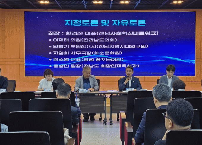 À̳¯ Æ÷·³Àº ÀÌÀçÅ ÀÇ¿øÀ» ºñ·ÔÇØ ±è´ëÁß Àü³²µµ±³À°°¨, Á¤¼ø³² (»ç)Àü³²Áö¹æ½Ã´ë¿¬±¸¿øÀå, ³ë¿ë¼÷ Àü³²¸¶À»°øµ¿Ã¼¸¸µé±âÁö¿ø¼¾ÅÍÀå µî °ü·Ã Àü¹®°¡µéÀÌ Âü¼®ÇÑ °¡¿îµ¥ Àü³²Çü ±³À° °Å¹ö³Í½º ±¸ÃàÀ» À§ÇÑ Çù·Â Àü·«°ú ¸ð¹ü »ç·Ê¸¦ °øÀ¯ÇÏ°í ¹ßÀü ¹æÇâÀ» ¸ð»öÇϱâ À§ÇØ ¸¶·ÃµÆ´Ù.