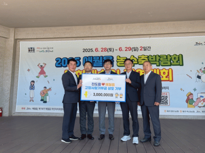 ƯÈ÷ 6¿ù 27ÀÏ¿¡ ¿¸° °ø½Ä °£´ãȸ¿¡¼´Â ÁøµµÀ¾°ú ¾Ö¿ùÀ¾ÀÌ °íÇâ»ç¶û±âºÎ±Ý 300¸¸ ¿øÀ» »óÈ£ ±âºÎÇϸç, Áö¿ª °£ ÀÀ¿ø°ú Çù·ÂÀÇ ÀÇÁö¸¦ ÇൿÀ¸·Î º¸¿©Áá´Ù.