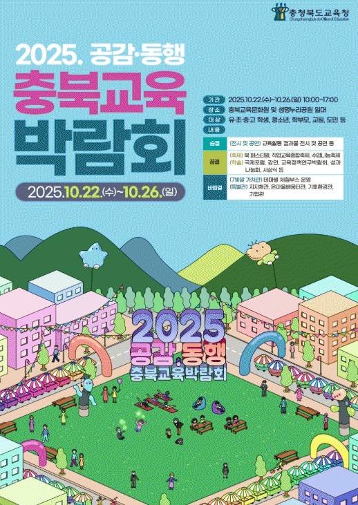 ÃæºÏ±³À°Ã»Àº '2025. °ø°¨?µ¿Çà ÃæºÏ±³À°¹Ú¶÷ȸ'¸¦ º¸´Ù ¾ÈÁ¤Àû, ü°èÀûÀ¸·Î ¿î¿µÇϱâ À§ÇÏ¿© 7¿ùºÎÅÍ ÀÚ¿øºÀ»çÀÚ¸¦ ¸ðÁýÇÏ¿© Áú¼, ¾ÈÀü, ȯ°æÁ¤È µîÀ» Áö¿øÇϰí, 100ÀÎ ¼Æ÷ÅÍÁ ±¸¼ºÇØ µµ¹Î°ú ÇÔ²² ¸¸µé¾î °¡´Â ±³À°¹Ú¶÷ȸ·Î ¿î¿µÇÒ ¿¹Á¤ÀÌ´Ù.