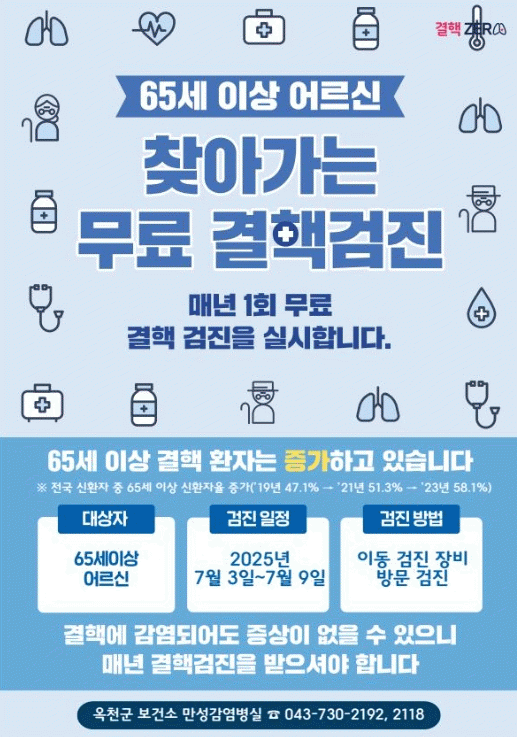 ¾Æ¿ï·¯ 65¼¼ ÀÌ»ó ¾î¸£½Å»Ó¸¸ ¾Æ´Ï¶ó, °áÇÙÀÌ ÀǽɵǴ °æ¿ì ¿Áõ±ºº¸°Ç¼Ò ¸¸¼º°¨¿°º´ ¿¹¹æ½Ç·Î ¹æ¹®ÇÏ¸é ¹«·á·Î °áÇÙ °Ë»ç¸¦ ¹ÞÀ» ¼ö ÀÖ´Ù.