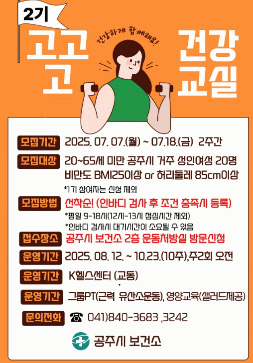 À̹ø °Ç°±³½ÇÀº ¼ºÀÎ ¿©¼ºÀ» ´ë»óÀ¸·Î, °ü³» Çコ¼¾ÅÍ¿Í ¿¬°èÇØ Àü¹®ÀûÀ̰í ü°èÀûÀÎ ±Ù·Â ¿îµ¿ ¹× ¿µ¾ç °ü¸®¸¦ Á¦°øÇÔÀ¸·Î½á ¸¸¼ºÁúȯ ¿¹¹æ¿¡ ±â¿©Çϱâ À§ÇØ ¸¶·ÃµÆ´Ù.