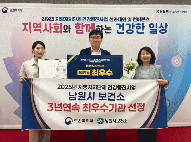 ÃÖ°æ½Ä ³²¿ø½ÃÀåÀº ¡°3³â ¿¬¼Ó ÃÖ¿ì¼ö ±â°ü ¼±Á¤Àº ³²¿ø½Ã¹ÎÀÇ Àû±ØÀûÀÎ Âü¿©¿Í º¸°Ç¼Ò Á÷¿øµéÀÇ ³ë·ÂÀÌ ÀÖ¾ú±â¿¡ °¡´ÉÇß´ø ¼º°ú¡±¶ó¸ç, ¡°¾ÕÀ¸·Îµµ º¯ÈÇÏ´Â °Ç°È¯°æ¿¡ ¸ÂÃç ´Ù¾çÇÏ°í Æ÷°ýÀûÀÎ ÅëÇհǰÁõÁø »ç¾÷À» Áö¼ÓÀûÀ¸·Î ÃßÁøÇØ ³ª°¡°Ú´Ù¡±°í ¹àÇû´Ù.
