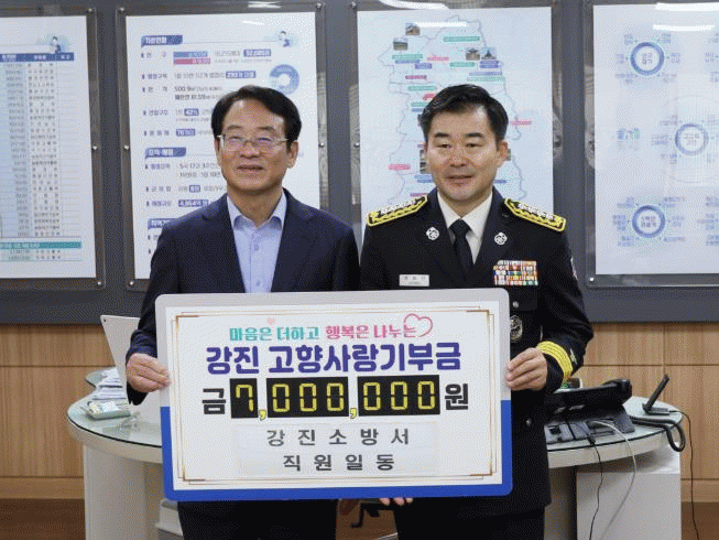 [HKSÇàÁ¤¹æ¼Û]°­Áø¼Ò¹æ¼­ Á÷¿øµéÀÌ Áö¿ª ¹ßÀü°ú »ó»ýÀ» À§ÇÑ ¶æÀ» ¸ð¾Æ 700¸¸¿øÀÇ °íÇâ»ç¶û±âºÎ±ÝÀ» °­Áø±º¿¡ ±âŹÇß´Ù.