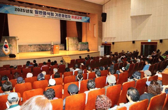 À̹ø ±³À°Àº ½ÄǰÀ§»ý¹ý Á¦41Á¶¿¡ µû¶ó ÀϹÝÀ½½ÄÁ¡ ¿µ¾÷ÀÚ°¡ ¹Ýµå½Ã À̼öÇØ¾ß ÇÏ´Â ¹ýÁ¤ Àǹ«±³À°À¸·Î, »ç´Ü¹ýÀÎ Çѱ¹¿Ü½Ä¾÷Áß¾Óȸ ÃæºÏÁöȸ ±«»ê±ºÁöºÎ ÁÖ°üÀ¸·Î ÁøÇàµÆ´Ù.